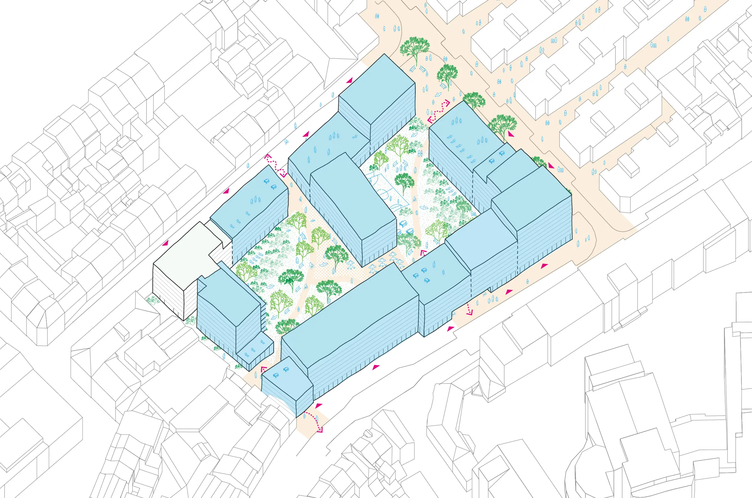 « Un mix de logements abordables et de logements au prix du marché peut créer une marge de manœuvre financière. Des interventions spatiales sobres et bien pensées peuvent renforcer la vie communautaire. »