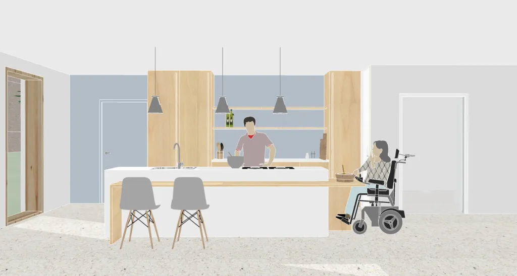 De persona’s ‘Jan’ en ‘Linda’ werden een leidraad, met de kamer als bouwsteen: een ruimte met onzichtbare zorg en tilliften voor Linda en een flexibele, maar ordelijke indeling voor Jan, met een duidelijke dag- en nachtindeling. We laten persona’s een traject afleggen dat ritme, dagindeling en rituelen in kaart brengt en ruimtelijk vertaalt. Door bewoners een actieve rol te geven, werd het einddoel van een thuis waar zij verantwoordelijkheden kunnen opnemen, bereikt. De methodiek stimuleert creatief en reflectief denken en biedt een referentiekader om beslissingen te (her)evalueren.