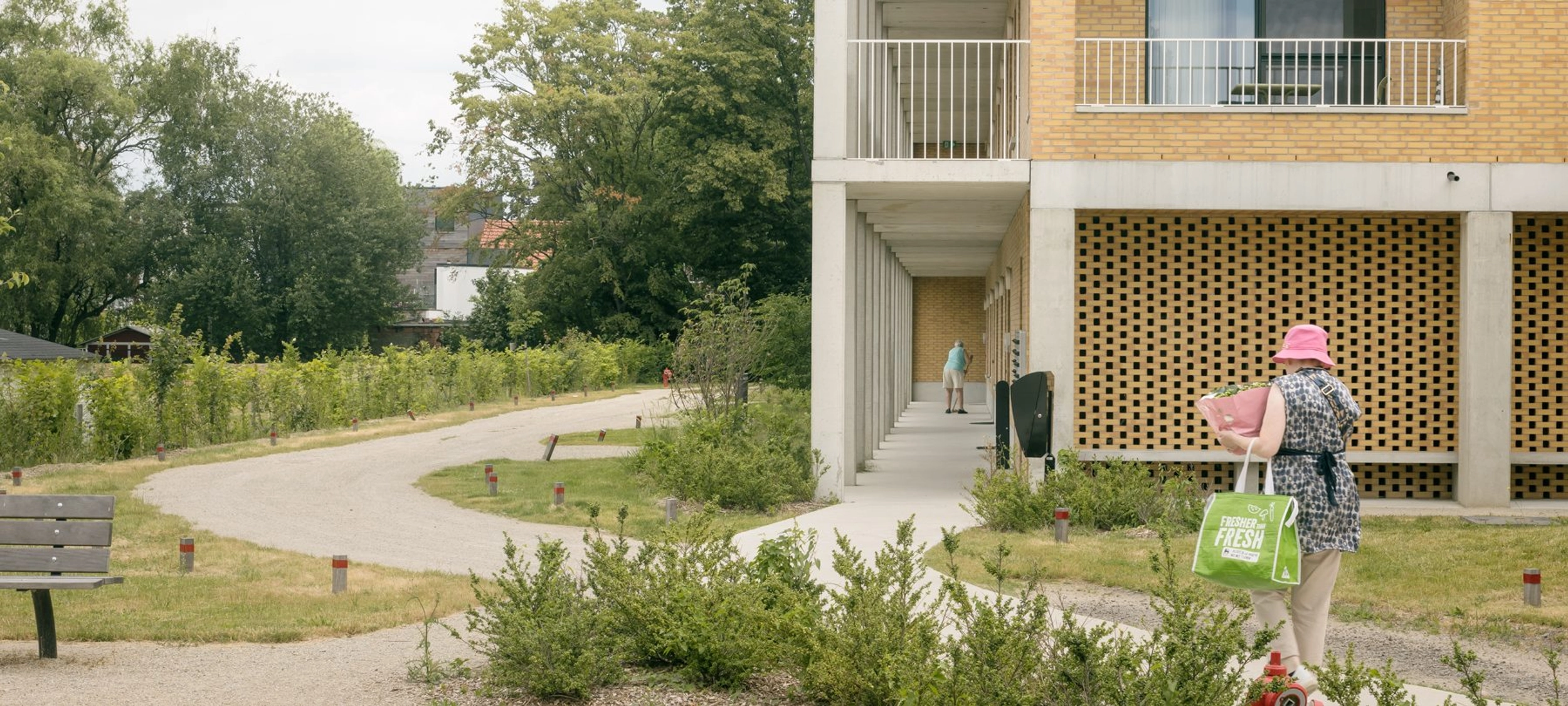 Public route with a view of the local service centre (on the left) and the assisted living units. Copyright Stijn Bollaert