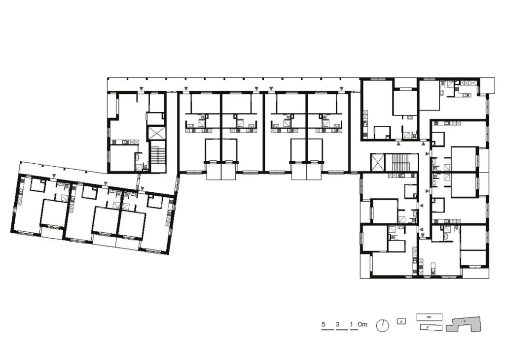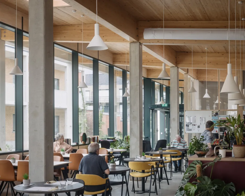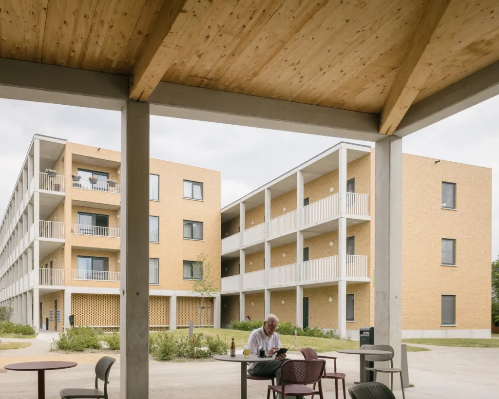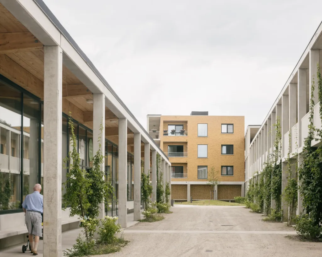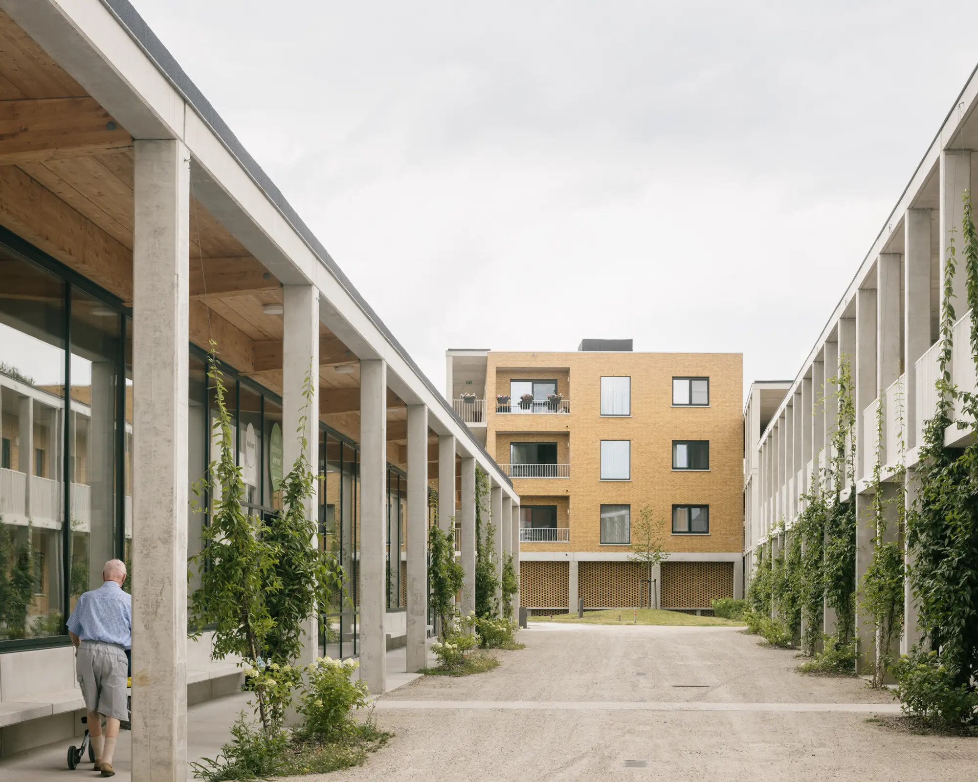 The architecture is clear-cut, using a rational structure and robust materials. In addition to the assisted living units, the project provides space for a hair salon, nail studio, laundry room, multipurpose room, underground car park and a local service centre. The dwellings are distributed across three buildings on the site. Building height is limited to a maximum of four storeys, in line with the surrounding context. Wherever possible, the assisted living units have been designed as dual-aspect apartments.