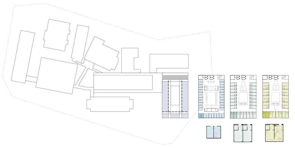 Compact buildings combine short walking distances with high flexibility through modular floor layouts. A performance-based design approach made it possible to define key priorities from the very first sketches, such as generous natural daylight and a healthy environment for patients and staff.
